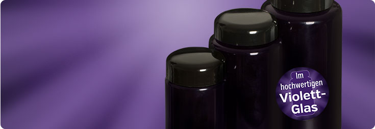 Unsere hochwertigen Violettgläser bieten besonderen Schutz für empfindliche Rohstoffe und haben noch viele weitere Vorzüge.
